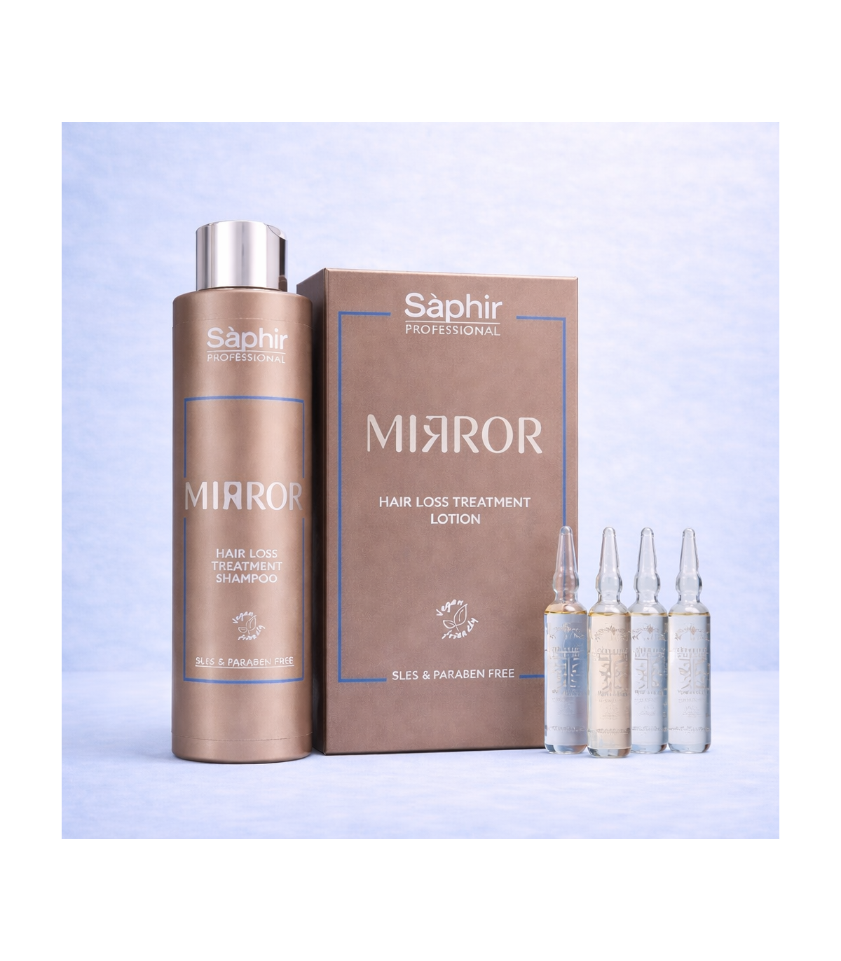 Il Kit Mirror Anticaduta Saphir Professional è un trattamento completo contro la caduta dei capelli, ideale per capelli fragili e indeboliti. Composto da Shampoo Hair Loss Treatment e Lozione intensiva in fiale, aiuta a contrastare la caduta, rinforzare la fibra capillare e stimolare il microcircolo del cuoio capelluto. La formula è SLES e Paraben Free, delicata ma efficace, perfetta per un utilizzo costante. I capelli risultano più forti, corposi e vitali già dalle prime applicazioni. Trattamento professionale anticaduta per uomo e donna.