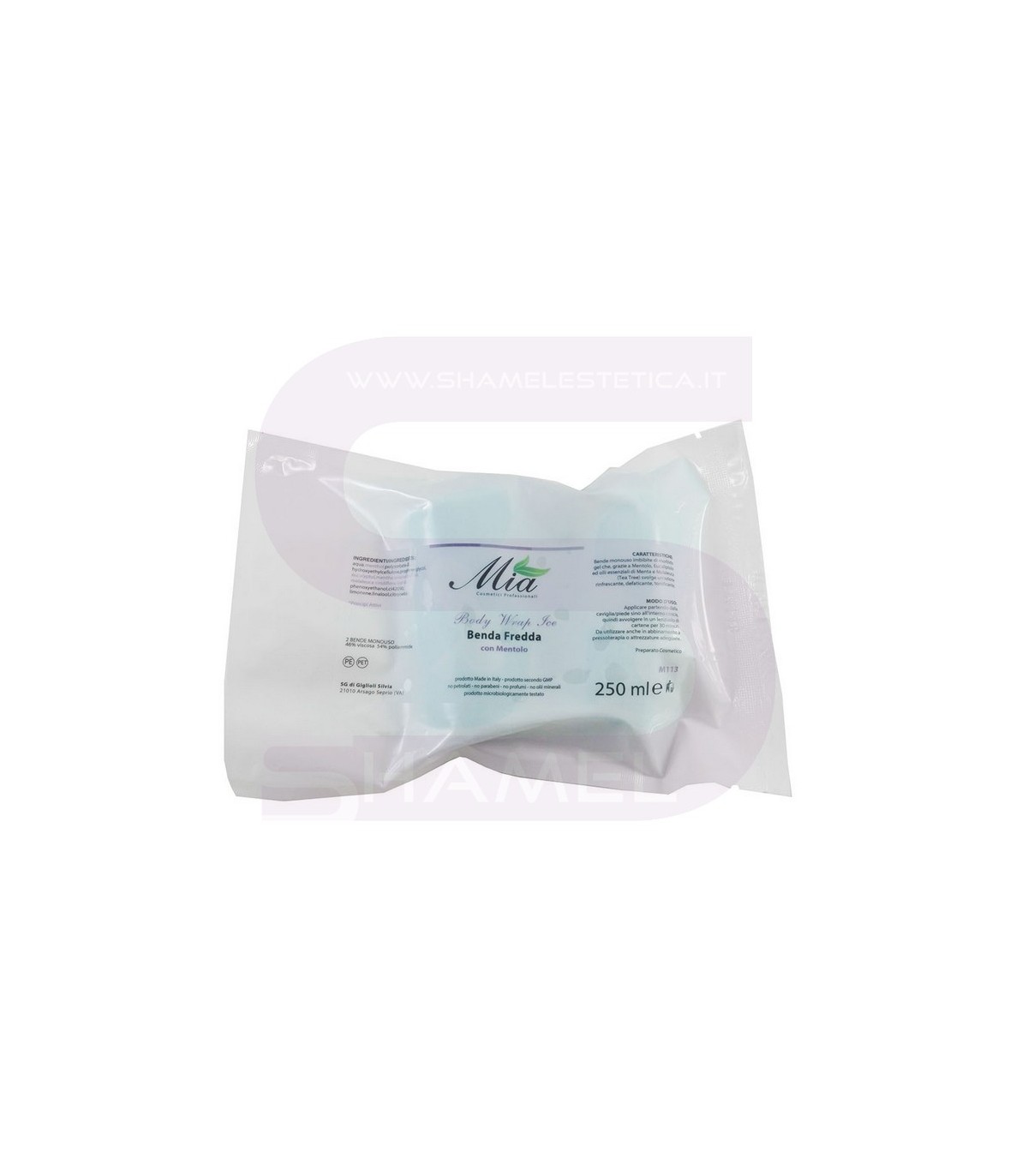 Bende monouso imbibite di morbido gel che, grazie a Mentolo, Eucaliptolo, oli essenziali di Menta e Melaleuca (Tea Tree) svolge un'azione rinfrescante, defaticante, tonificante.