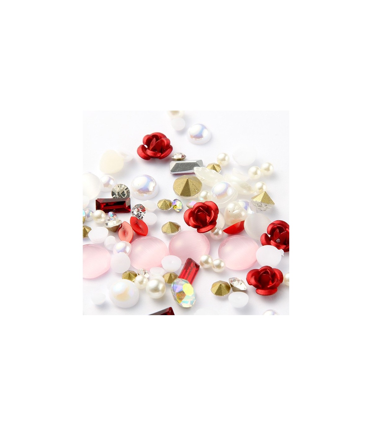 Mix di decorazioni 3d (rose, perle, giada)